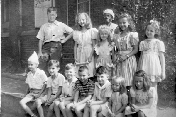 The “Allison” about whom he wrote was my mother. Actually, her name was Ellison. I have a group photo taken outside in what appears to be the entrance to the alley between Harris and Brown dorms. It’s from my mother’s birthday in August 1942. My mother is the girl in the middle of the row of kids who are standing. My uncle, Hugh Folk [IM 55, MS IM 57], is the older boy standing at the top left.