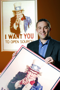 Take the proprietary business model: I’m going to go take risk up front and build some software, or take a little bit of my money and some of the government’s money and I’m going to make something that’s proprietary, that’s mine. And I’m going to say, “OK, government, I’m going to sell you a license to use what I’ve built. You’re going to pay me for it. You’ll pay me whenever there’s a new version, etc.” And there are a lot of businesses that make money that way. And what the open-source software model brings is, “OK, instead of this thing here that I own and I control, I’m now putting it out there that I’m licensing, and I still hold the copyright, but you and anyone else or any vendor who wants to pay me can make money of this too, and also contribute to it.” … It’s almost like what researchers do on campus with publishing and sharing ideas. It’s the same thing—except when I publish, that knowledge is now in software, and if it’s really good knowledge it’s going to stay, and if it’s not someone’s going to come in and remove it. The best sort of analogy is that it’s like the roads. The roads are built for you and I to go make money off of. And there’s probably different competitions for how you innovate a road, but a lot of it’s probably shared knowledge.