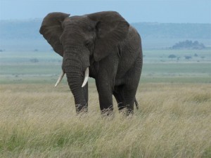 We came to the Masai Mara Game Reserve and the affiliated Grand Sopa Lodge on the 10th day of our trip and went the next morning on our daily game safari. We drove about 10 miles on very rough roads and were headed east on a fairly straight section when we slowed. A large herd of elephants was coming toward us diagonally on our left at a fairly high-speed ramble.