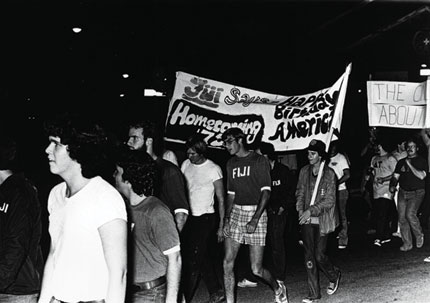 Helmet photo by Josh Meister. Illustrations by Steve Wacksman. Black and white campus photos courtesy of Archives and Records Management.