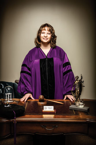 Just a few months into her term, she’s already made a name for herself: “the judge with the purple robes,” to be exact. (Her vestments were custom made in her favorite color by the wife of a colleague.) But, Homier says, her most important title is one she’s had all along: “Mom.”