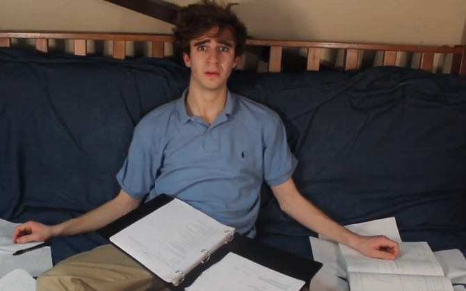 In the short, Parker (at left) plays Francis, a young man who questions his love for math. His journey of self-discovery is aided by a “Drug Slingin’ Math Friend” (Seals), and a “Pythagorean Stoner” (McCurry, dressed in tie-dye, and later in a toga).