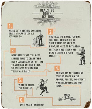 He said the Scoutmob team works hard to “delight customers” with its wit, including the e-mail address for more information: [email protected].