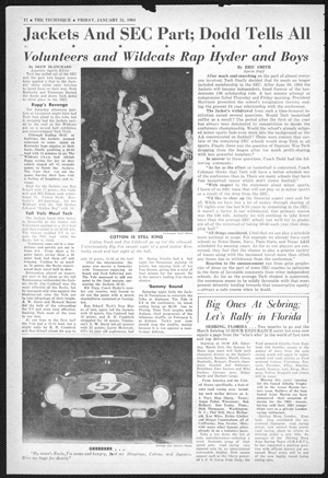Jesse Outlar wrote in his Jan. 22, 1964, Atlanta Constitution sports column, “Tech is an elite member of the league, a famous name nationally known for high standards in the classroom and in athletic events. The SEC does not want to lose Tech.”