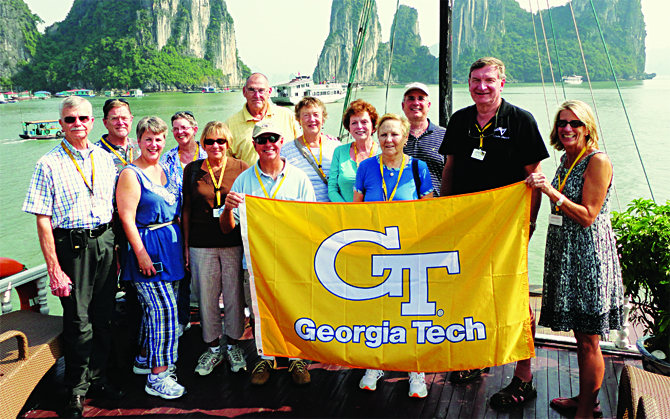 Our first morning in Vietnam, we gathered with our tour guide and introduced ourselves. Two of our Georgia Tech travelers, it turned out, were Vietnam War veterans. George Moss, Text 57, had been a career military officer and saw action in the early years of the conflict. He returned to the country only at his wife’s urging. John Smith, CE 68, had been drafted and served in the later years of the conflict.