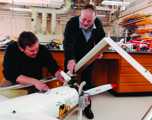 The new test bed is called the GTRI Airborne Unmanned Sensor System (GAUSS). “It gives us the ability to offer proof of principle tests to customers at a price that’s reasonable, at a schedule that’s reasonable,” says Mike Brinkmann, MS EE 91, principal research engineer for sensor packages for the Georgia Tech Research Institute (GTRI).