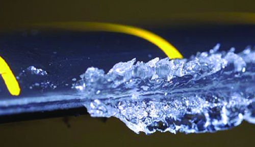 Ice formation on the blades of a helicopter is a serious problem. “The leading edge is very important for lift production,” Sankar says. “If you have a big chunk of ice over the leading edge, then the rotor may stall and the helicopter will lose altitude.”