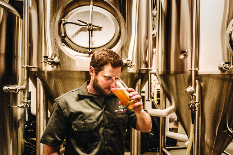 “Chris is grain to door, and I am door to glass,” Santamaria says. But he also plays a pivotal role as Second Self’s “taste ambassador,” drawing upon his experience in the restaurant business to help Doyle develop flavor profiles and recipes for the beer they make.
